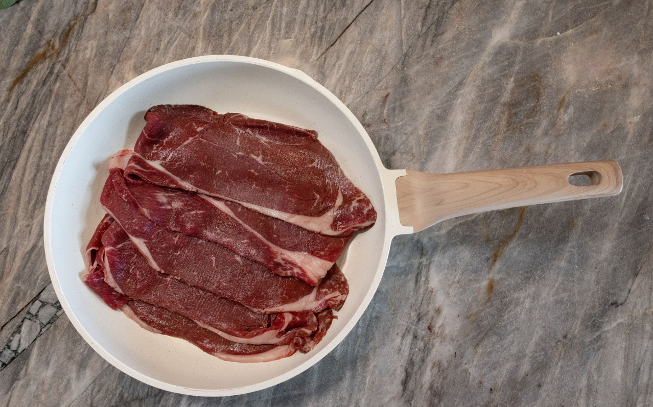 Sliced London Broil perfect for Philly cheese steaks, beef and broccoli, or seasoned in the skillet.